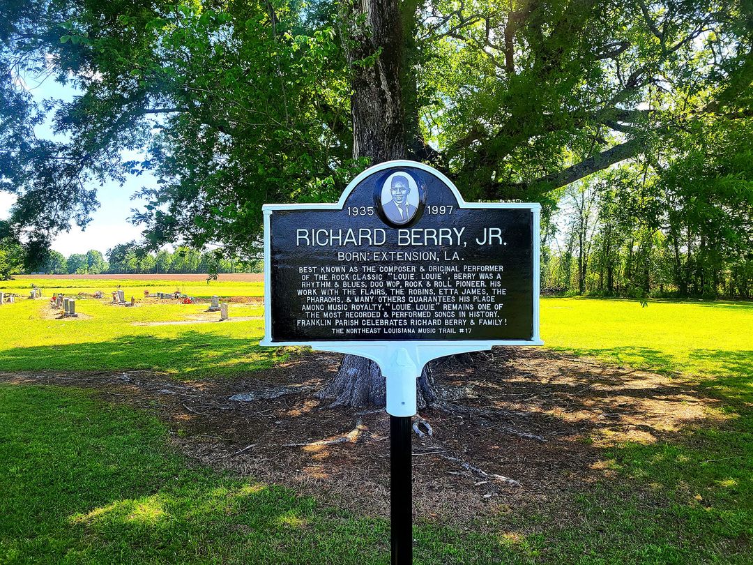 The special road marker for Richard Berry at his birthplace in Extension, Louisiana, was installed last week by the Northeast Louisiana Music Trail, a non-profit organization established to honor the rich musical heritage of Northeast Louisiana