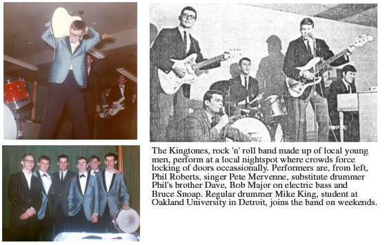 The Kingtones were a regional band out of Grand Rapids, Michigan. The band started in 1957 when the original members were only 13 or 14. In 1961 they cut their first record, “Wish for an Angel / Don’t Come Around”, which hit No. 1 on the local Top 40 charts in West Michigan. In 1963 the Kingtones opened, backed, or performed with Del Shannon, Bobby Vee, Bobby Vinton, and the Beach Boys. In the same year they released their third and most successful record, “Twins,” which reached No. 7 on the local Top 40 charts. Cadet Distributing, a promotional firm in Detroit, re-released “Twins” in 1964 with a slightly different arrangement. Although the record was promoted heavily in the western states, just when it looked as though it was going to take off the “British Invasion” struck and the record stopped receiving airplay. Undaunted, the group continued to perform as a highly popular garage band for the next four and a half decades.